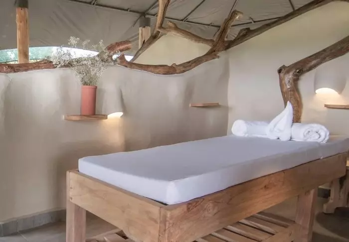 Myös uima-altaalta on hienot näkymät, ja jos kehosi tuntuu jäykältä safariautossa vietettyjen tuntien jälkeen, vierailu pienessä kylpylässä rentouttavan hieronnan merkeissä tekee ihmeitä.