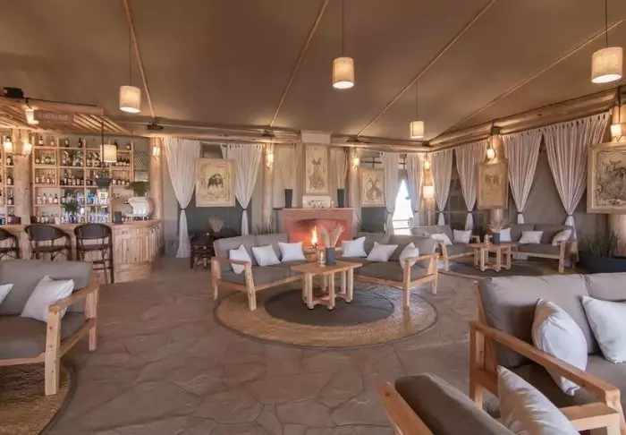 Yhteistiloihin kuuluvat ruokailu- ja oleskeluteltta, joka on sisustettu pehmeillä nojatuoleilla ja värikkäillä masaimatoilla ja -tyynyillä. Leirissä on kaksi nuotiopaikkaa, ja vierailla on tapana kokoontua nuotioiden ympärille auringon laskiessa nauttimaan aperitiiveja.