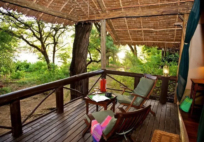 Suurin houkutin on leirin oma ”lounge”. Istahda pehmeään nojatuoliin, tilaa kylmä juoma ja nauti upeasta näköalasta joelle. Tämä paikka on erityisen vaikea jättää taakseen, kun on aika jatkaa matkaa! Onneksi ravintolaan ei ole pitkä matka, sillä se sijaitsee loungen naapuriteltassa. Ruoka on herkullista, ja hyvällä onnella voit saada aamiaisvieraaksi leirin alueelle vaeltavan norsun.