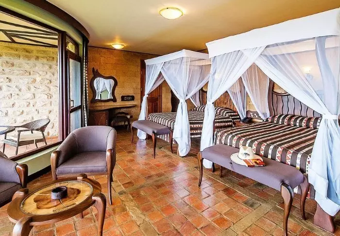 Kaikissa huoneissa on oma terassi, josta avautuu upea näköala Kilimanjaroa ympäröivien tasankojen yli.