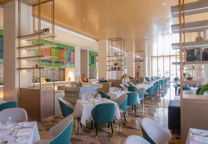 Lounge/baari ja ravintola ovat erittäin tilavia, ja niiden isot ikkunat tulvivat sisään valoa ja saavat katon vaikuttamaan korkeammalta.