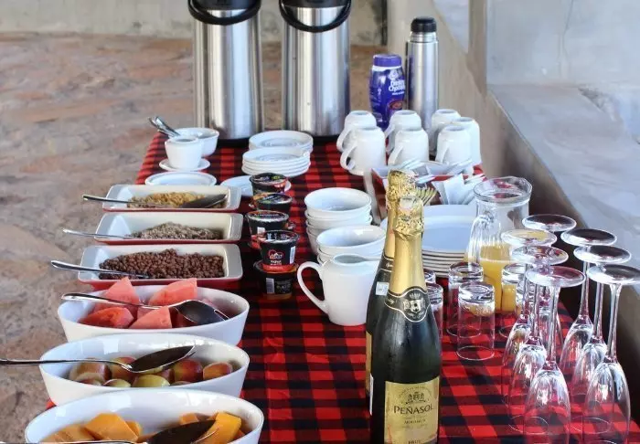 Voi kuitenkin olla vaikeaa irrottautua baarin lämpimästä ilmapiiristä. Sieltä löydät pehmeät sohvat, upeat näkymät, WiFi:n, erinomaisia juomia ja kodikkaan tunnelman. Ravintola ei ole kaukana, ja se on yhtä viehättävästi sisustettu kuin muu leiri. Ruoka on todella herkullista – voit esimerkiksi luoda oman pizzan, joka paistetaan kiviuunissa.