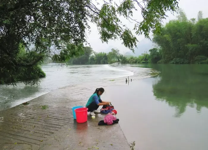Tämän jälkeen on aika aloittaa jokiseikkailu Yangshuon idyllisissä maisemissa. Seuraavan tunnin aikana seilaat rauhallisesti virtaavaa jokea pitkin ohi korkeiden, epäsymmetristen kalkkikivivuorien, metsien, riisipeltojen ja pienten kyläyhteisöjen. Voit nähdä esimerkiksi joessa pyykkääviä naisia, kalastavia miehiä ja peltoja kyntäviä vesipuhveleita.