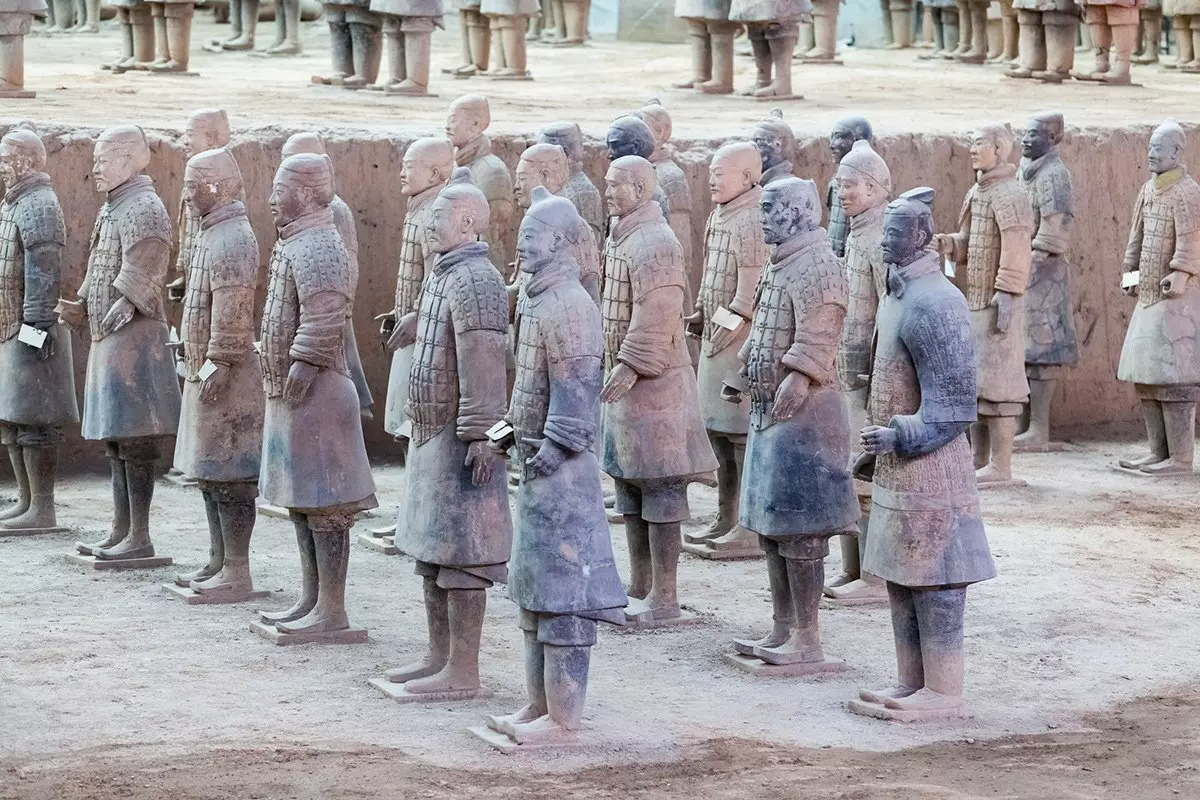 Terrakotta-armeija koostuu tuhansista luonnollisen kokoisista sotureista, jotka on varustettu asein ja järjestetty taistelumuodostelmiin, sekä sadoista vaunuista ja hevosista. Kiinan ensimmäisen keisarin uskotaan teettäneen armeijan suojelemaan omaa hautaansa. Saviarmeijasta tekee ainutlaatuisen myös se, että jokainen patsas on yksilöllinen, ja hahmojen vaatetus ja varustus antaa hyvän käsityksen siitä, millaista elämä oli tällä seudulla yli 2000 vuotta sitten.