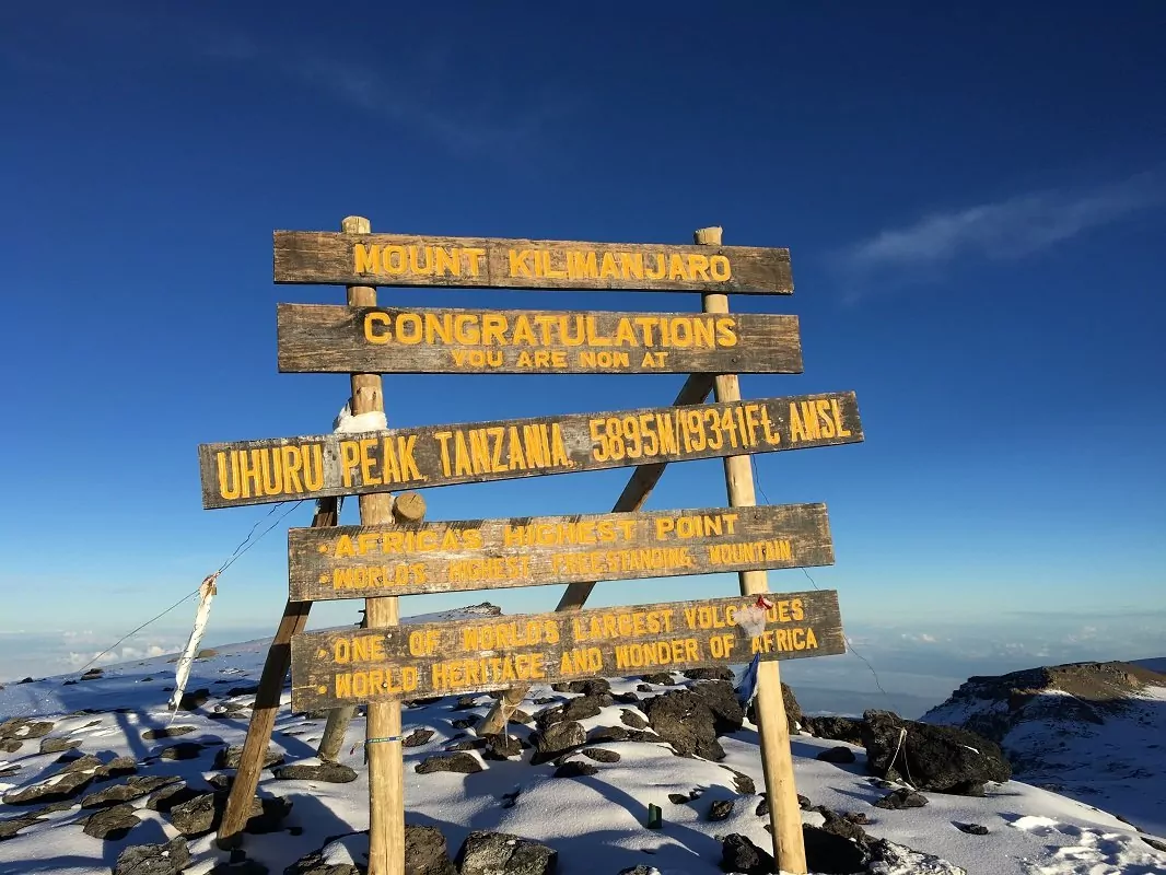 Kevyen välipalan jälkeen on edessä nousun viimeinen osuus ja Kilimanjaron huippu. Maasto on haastavaa, etenkin pimeässä, ja monet kokevat n. 6 tunnin vaelluksen Stella Pointille koko nousun vaikeimmaksi osuudeksi. Tavoitteena on saavuttaa Stella Point pian auringonnousun jälkeen. Stella Pointissa pidetään lyhyt levähdystauko ja nautitaan auringonnousun kauneudesta. Levähdystauko ei ole pitkä, koska muuten uudelleen liikkeelle pääsemisestä tulisi lähes ylivoimaista kylmyyden ja väsymyksen takia. Matka jatkuu kraatterinreunaa pitkin, ja viimeinen osuus on tasaisesti nousevaa maastoa. Matkalla Uhuru Peakille – Kilimanjaron ja koko Afrikan korkeimmalle kohdalle – voi vuodenajasta riippuen sataa lunta. Kun viimein saavutat 5895 metrin korkeudessa häämöttävän huipun, voit onnitella itseäsi, nauttia henkeäsalpaavista näköaloista ja ottaa selfien Uhuru Peak -kyltin kanssa muistoksi urakastasi.
