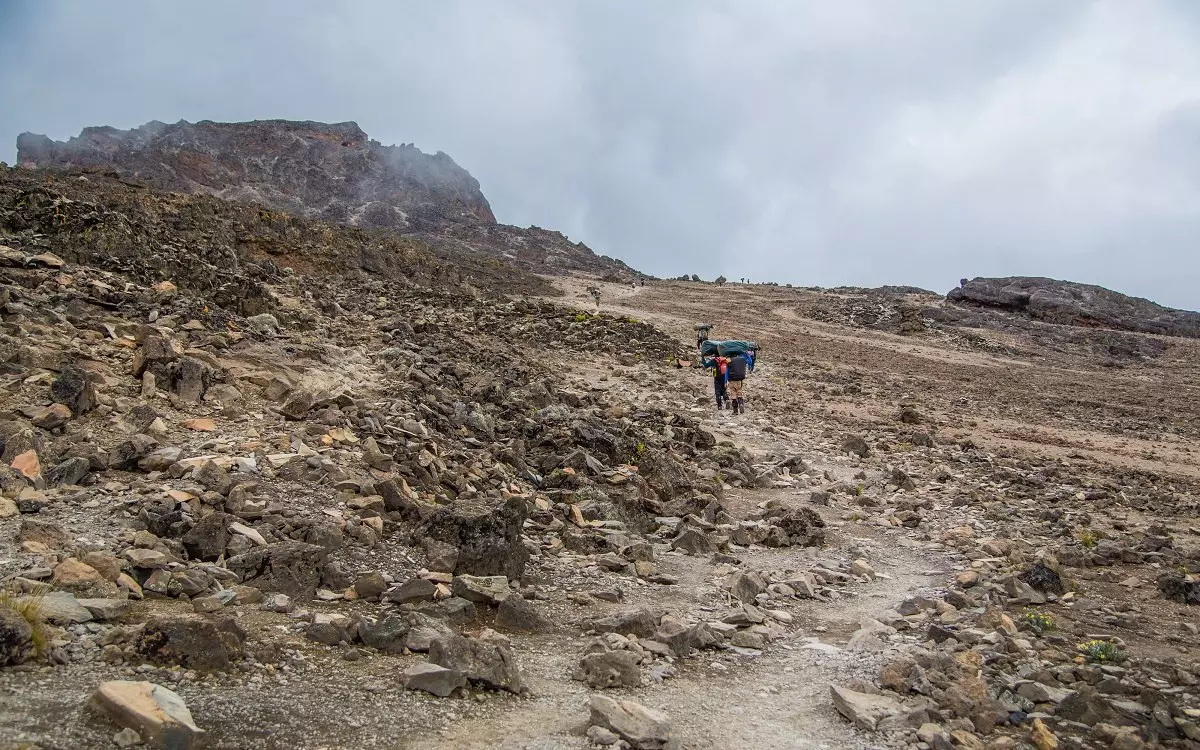 Tämän jälkeen on aika laskeutua Barafu Campiin. Lyhyen lepotauon jälkeen jatketaan matkaa kivikkoista polkua pitkin alas Mweka Campiin saakka, jossa sinua odottavat ansaitut yöunet.
