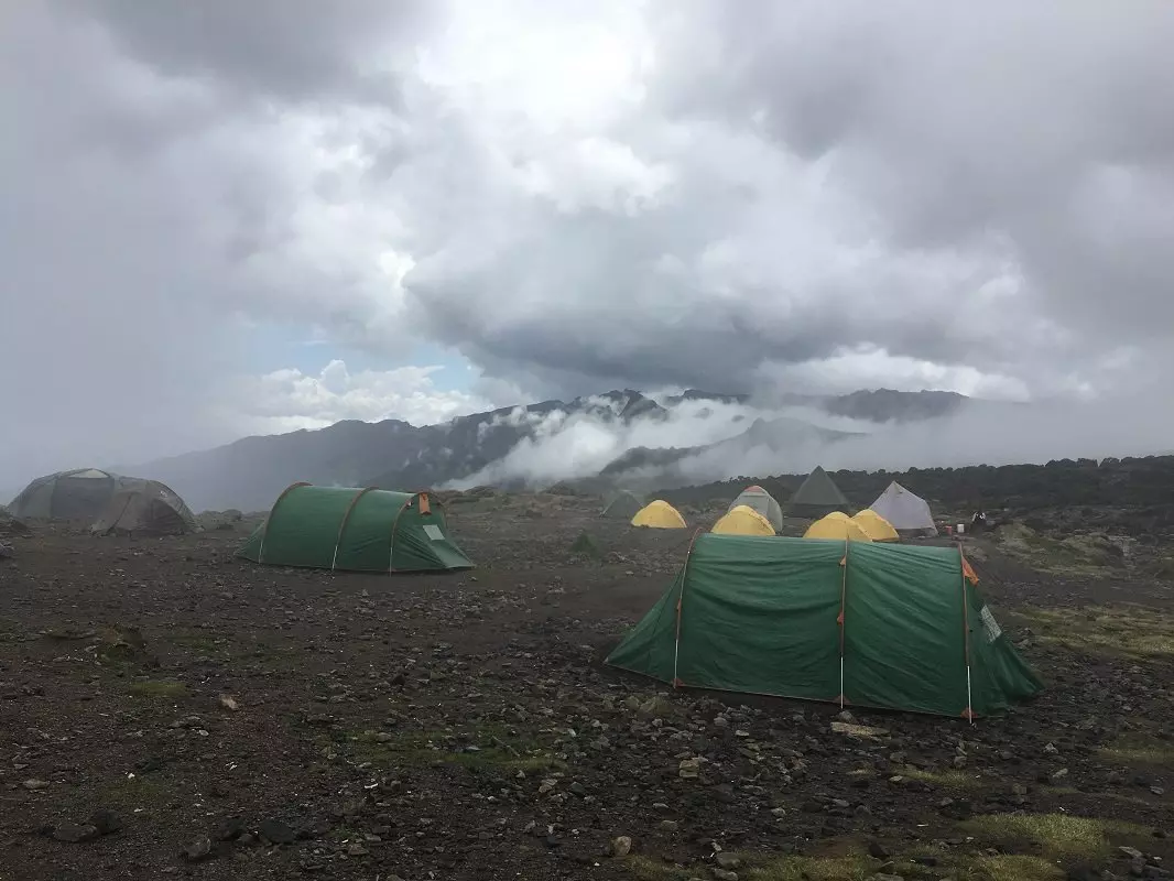 Korkeudet: Shira 1 Camp: 3 500 m mpy, Shira 2 Camp: 3 840 m mpy