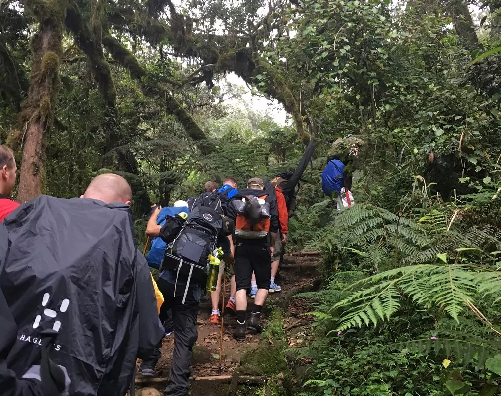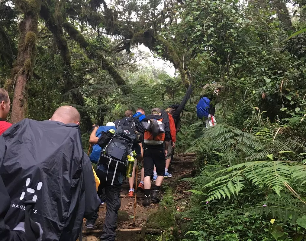 Reitti kulkee viehättäviä polkuja pitkin sademetsän läpi, ja hyvällä onnella voit nähdä vilauksen metsän eläimistä. Sademetsän jälkeen edessä aukeaa nummimaisema. Maisemaa luonnehtivat mm. kanervat, villikukat, valtavat dendrosenecio-kasvit ja kivikkoiset polut. Matkalla aukeaa myös hieno näköala kohti Kibon massiivia. Kantajat kulkevat edeltä, jolloin teltat ja varusteet ovat jo paikallaan siinä vaiheessa, kun saavut Shira 2 Camp -leirille.