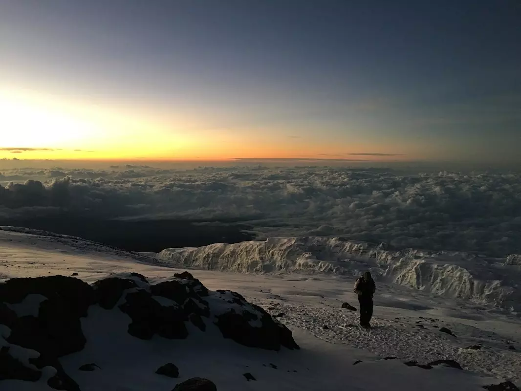 Kevyen välipalan jälkeen on edessä nousun viimeinen osuus ja Kilimanjaron huippu. Maasto on haastavaa, etenkin pimeässä, ja monet kokevat n. 6 tunnin vaelluksen Stella Pointille koko nousun vaikeimmaksi osuudeksi. Tavoitteena on saavuttaa Stella Point pian auringonnousun jälkeen. Stella Pointissa pidetään lyhyt levähdystauko ja nautitaan auringonnousun kauneudesta. Levähdystauko ei ole pitkä, koska muuten uudelleen liikkeelle pääsemisestä tulisi lähes ylivoimaista kylmyyden ja väsymyksen takia. Matka jatkuu kraatterinreunaa pitkin, ja viimeinen osuus on tasaisesti nousevaa maastoa. Matkalla Uhuru Peakille – Kilimanjaron ja koko Afrikan korkeimmalle kohdalle – voi vuodenajasta riippuen sataa lunta. Kun viimein saavutat 5895 metrin korkeudessa häämöttävän huipun, voit onnitella itseäsi, nauttia henkeäsalpaavista näköaloista ja ottaa selfien Uhuru Peak -kyltin kanssa muistoksi urakastasi.