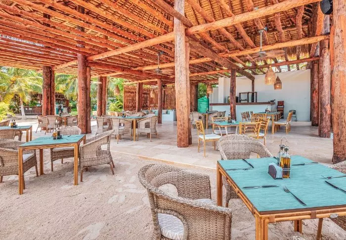Ateriat tarjoillaan viihtyisässä avoravintolassa, missä voit istua joko katoksen tai avoimen taivaan alla ja ihastella upeaa merinäköalaa. Ruokalistalla on sekä paikallisia että kansainvälisiä ruokia, paljon tuoretta kalaa ja äyriäisiä sekä eksoottisia hedelmiä ja kasviksia.