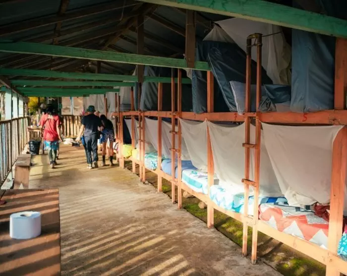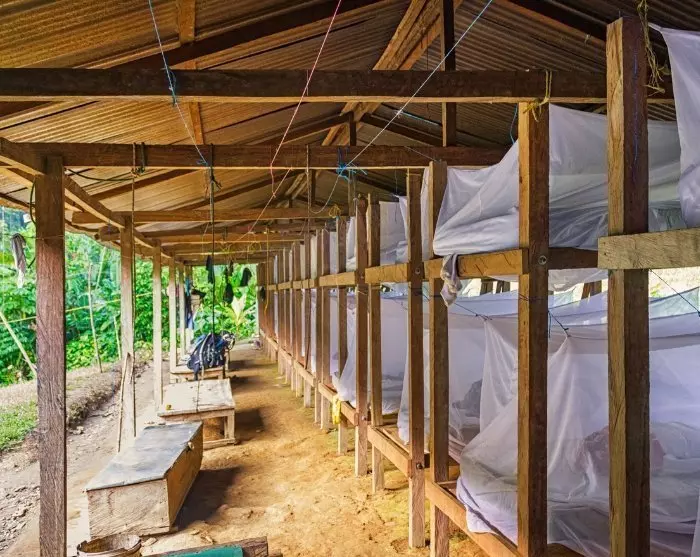 Yövyt matkan aikana kolmeen eri sademetsäleirillä matkalla/kotimatkalla Lost Cityyn. Leirit ovat melko yksinkertaisia, ja niissä on yhteiset WC- ja peseytymistilat. Ne voivat majoittaa noin 50 henkeä ja tilat jaetaan eri ryhmien kanssa, joten muista ottaa korvatulpat mukaan. Nukut kerrossängyissä tai riippumatoissa, joihin kuuluvat hyttysverkot. Leirit tarjoavat lakanat ja peitot, mutta suosittelemme oman makuupussinsisuksen mukaan ottamista. Yölämpötilat voivat laskea 18–22 asteeseen. Sängyt ovat katoksen alla, joten ne ovat suojassa sateelta.