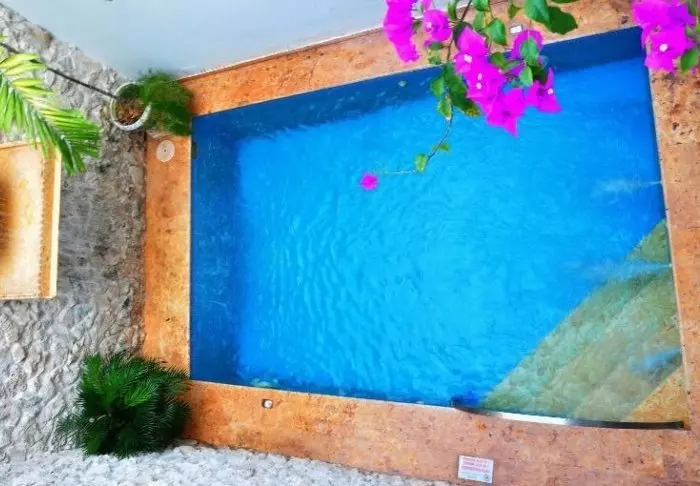 Hotellin sisäpihalla on pieni uima-allas, johon on mukava pulahtaa virkistäytymään keskipäivän kuumuudessa.