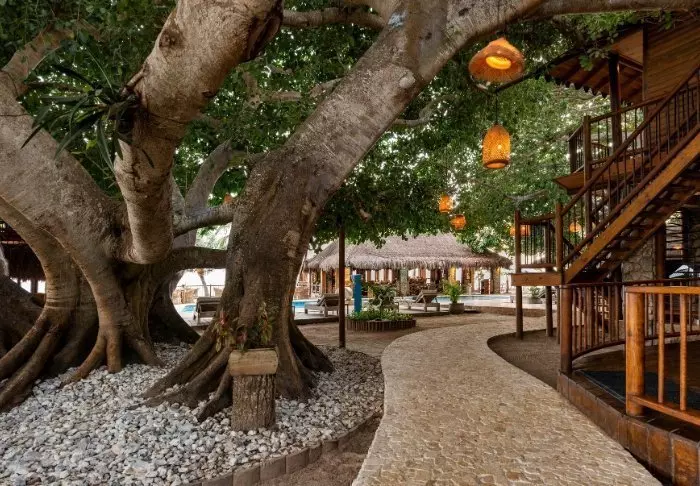 Hotellia ympäröi trooppinen puutarha palmuineen ja mangrovemetsineen. Sillä on myös oma yksityinen ranta, joten täällä majoittuessasi voit herätä rantaa lempeästi huuhtelevien aaltojen ääneen ja nauttia upeista merinäköaloista.