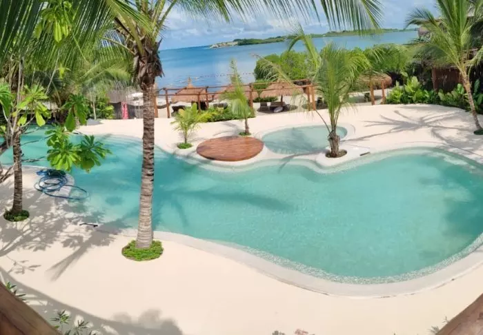 Aurinkotuolit ovat vapaasti käytettävissä, joten voit ottaa rennosti ja nauttia auringosta uituasi lämpimässä merivedessä tai pienessä uima-altaassa. Voit myös vuokrata kajakin tai SUP-laudan ja lähteä vesiretkelle.