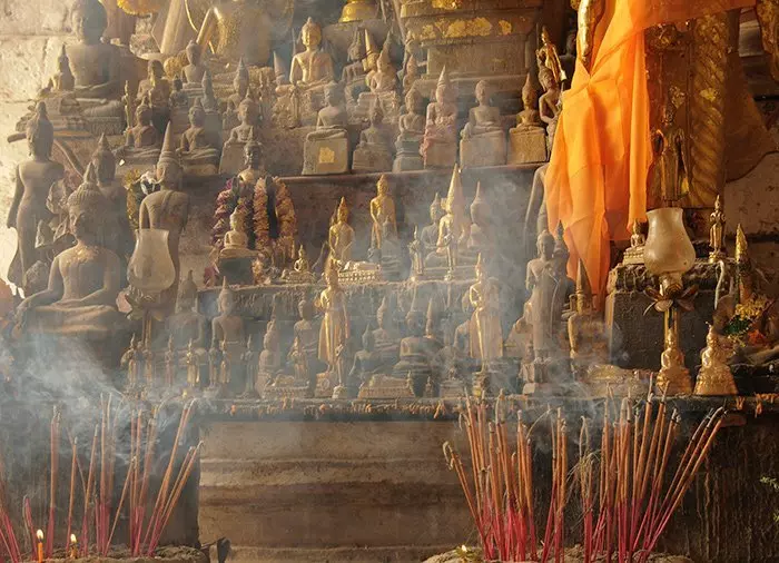 Seuraavaksi palataan takaisin hotellille nauttimaan aamiaista, jonka jälkeen alkaa retken toinen osuus: leppoisa veneretki Mekong-joella rehevän viidakon ja dramaattisten karstivuorien hallitsemissa maisemissa. Jokiretken määränpäänä ovat Pak Ou -luolat, joissa säilytetään satoja Buddhan patsaita. Matkalla tehdään pysähdys joen varrella sijaitsevassa kylässä, jossa voit seurata paikallisten kutojien työtä.