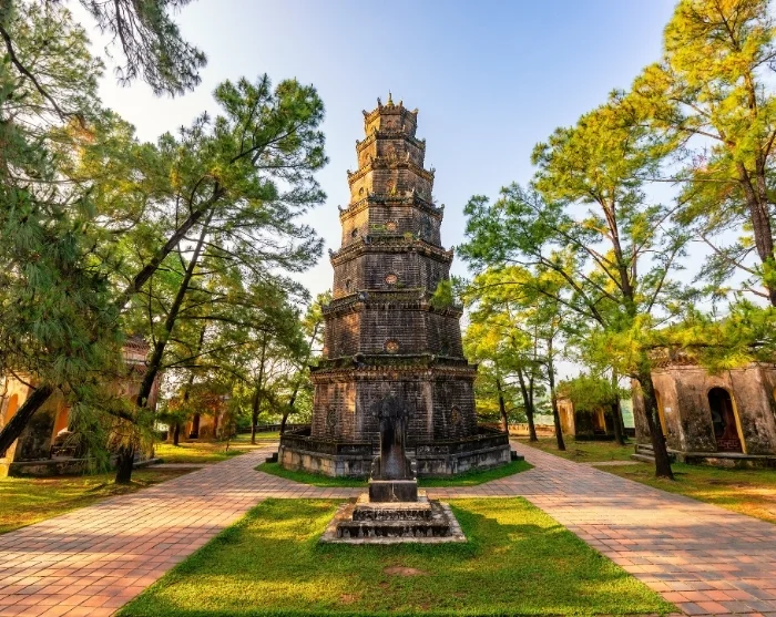 Seuraavaksi vuorossa on Thien Mu -pagodi, joka on Huén vanhin ja tunnetuin uskonnollinen maamerkki. Pagodi kohoaa korkealla Parfyymijoen ylle ja on ollut jo yli 400 vuoden ajan keskeinen buddhalaisuuden keskus Keski-Vietnamissa. Kahdeksankulmainen pagoditorni kurkottaa majesteettisena kohti taivasta, luoden rauhallisen ympäristön temppelin ja täällä yhä asuvan munkkiyhteisön ympärille.