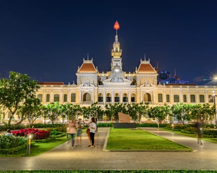Hämärän laskeuduttua kannattaa kävellä Nguyen Hue -kävelykatua pitkin, jota ympäröivät kukat, suihkulähteet ja tunnelmallinen arkkitehtuuri. Täällä kaupungin eloisuus tulee todella näkyviin, kun paikalliset kokoontuvat katutaiteilijoiden, tanssijoiden ja nuorten perheiden n ympärille muodostaen viehättävän ja eläväisen kokonaisuuden. Rentoutunut ja vilkas tunnelma huipentuu valaistun kaupungintalon ympärillä.