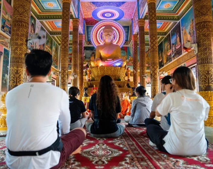 Tänään pääset kurkistamaan arkeen ja käsityöperinteisiin Tra Vinhin pienissä kyläyhteisöissä. Tra Vinh on rauhallinen provinssi Mekongin suiston eteläosassa, jonka tunnuspiirteenä on suuri khmer-väestö. Värikkäät pagodit, verkkaisa elämänrytmi ja hengellinen ilmapiiri antavat kaupungille ainutlaatuisen luonteen ja luovat tunnelman päivän elämyksille.