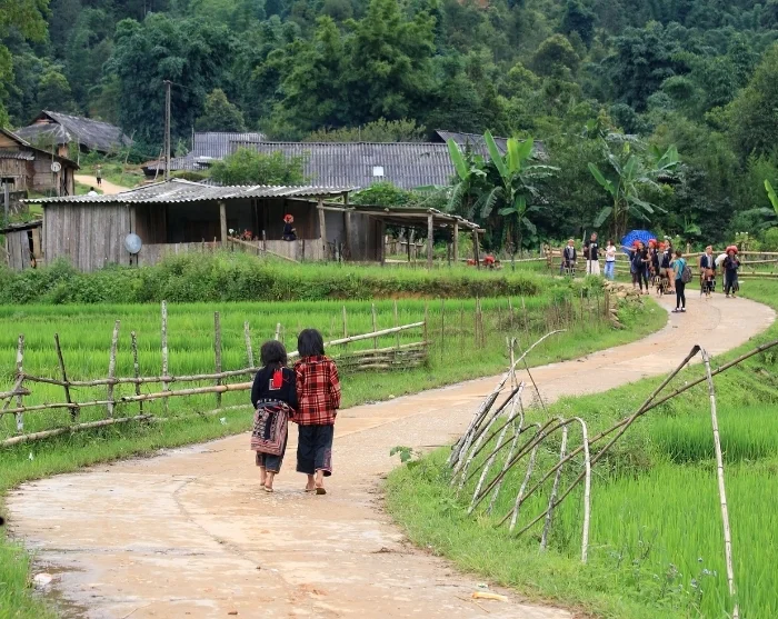 Tämän jälkeen matka jatkuu pieneen kylään, joka sijaitsee kauniilla paikalla Muong Hoa -laaksossa. Ajomatka kestää noin tunnin. Täältä alkaa noin puolentoista–kahden tunnin maisemallinen vaellus, joka kulkee polkuja pitkin alueen pienten kylien välillä. Reitti kiemurtelee vihreillä vuorenrinteillä ja rehevissä laaksoissa. Kirkkaana päivinä voit ihailla majesteettista Fansipan-vuorta. Muista ottaa mukaan tukevat kengät, sillä polut voivat olla liukkaita, erityisesti sateella.