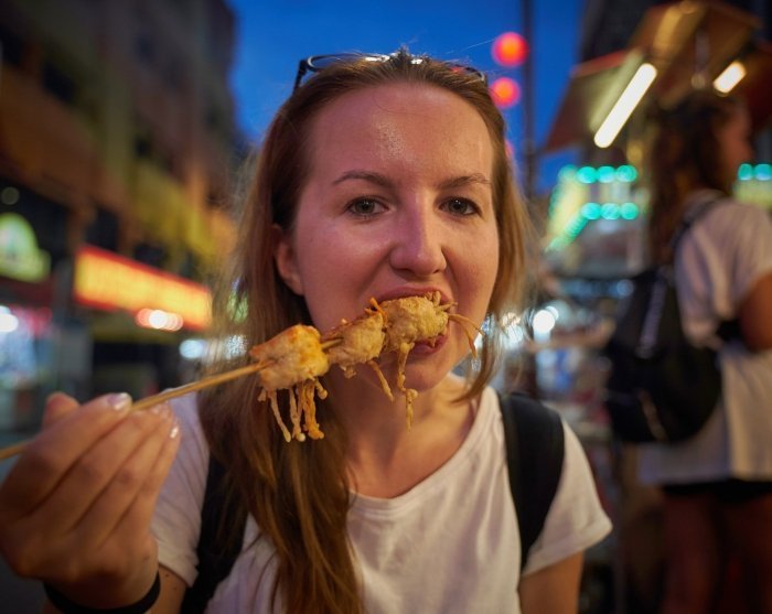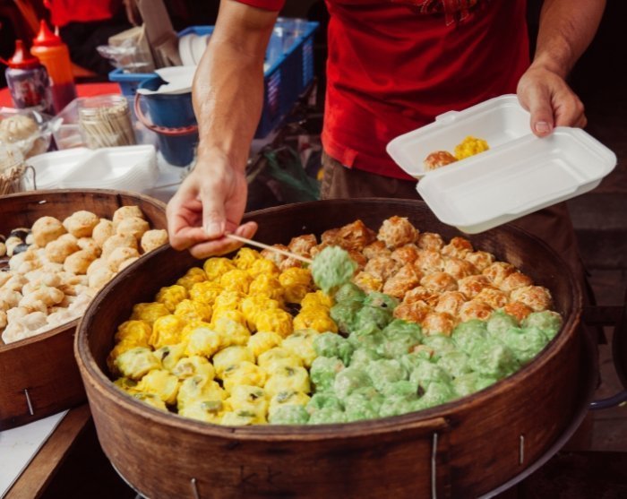 Temppelivierailun jälkeen voit uppoutua Chinatownin vilkkaisiin katuihin, joissa sinua odottaa aito katuruoka joka kadunkulmassa. Täällä voit maistella vuosisatoja vanhoista perheresepteistä valmistettuja kiinalaisia leivonnaisia, nauttia aromaattista teetä kodikkaassa antiikkiteemyymälässä ja maistaa kulhollisen mausteista Bak Kut Teh -ruokaa, jossa on mausteisessa keitossa hitaasti kypsennettyjä mureita porsaankylkiä.