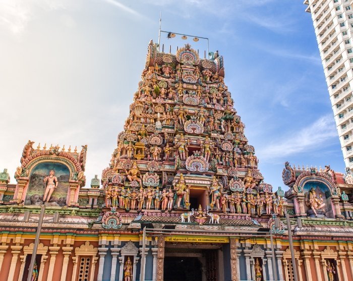 Sitten vierailet Sri Kandaswamy -temppelissä, joka rakennettiin 1900-luvun alussa ja joka on omistettu Lord Muruganille. Temppeli tunnetaan vaikuttavasta arkkitehtuuristaan, jossa perinteinen eteläintialainen tyyli yhdistyy värikkäisiin ja yksityiskohtaisiin koristeisiin. Temppeli on rauhallinen ja hengellinen paikka, joka antaa sinulle syvällisen käsityksen hindulaisuuden perinteistä ja käytännöistä, ja voit halutessasi osallistua rukoukseen.