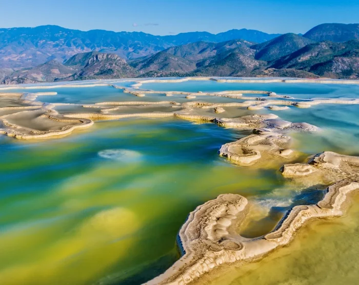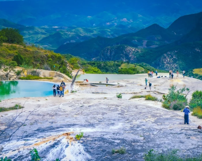 Retki jatkuu kohti yhtä Oaxacan vaikuttavinta luonnonilmiötä, Hierve el Agua, joka on tuhansien vuosien aikana muodostuneet vesiputoukset. Nimi “Hierve el Agua” tarkoittaa espanjaksi “vesi kiehuu”, mikä viittaa paikan lämpimiin lähteisiin. Vaikka vesi näyttää poreilevan samalla tavalla kuin kiehuva vesi, se on itse asiassa täydellistä virkistävälle pulahdukselle. Nauti luonnonaltaissa samalla kuin ihailet vaikuttavaa maisemaa.