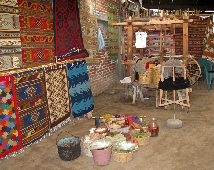 Retki jatkuu Teotitlaniin, joka tunnetaan kauniista käsin kudotuista villamatoistaan. Täällä voit nähdä perinteisen kudontatekniikan, joka on periytynyt sukupolvelta toiselle.