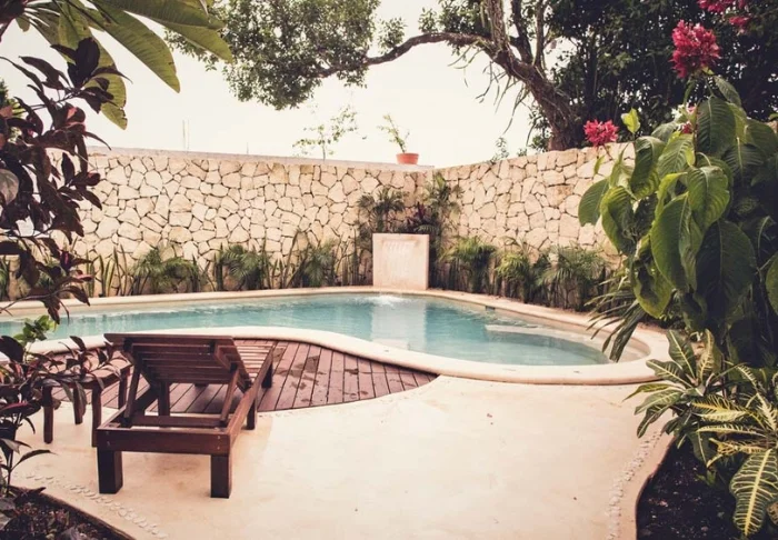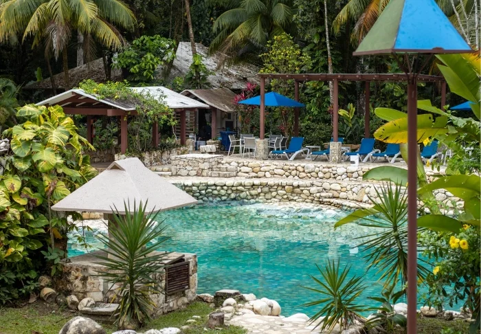 Pulahda virkistäytymään hotellin uima-altaaseen, joka muistuttaa luonnon cenotea, tai nauti viileästä juomasta ja auringon lämmöstä mukavassa aurinkotuolissa.