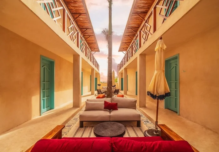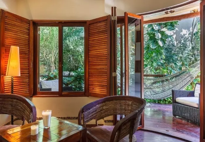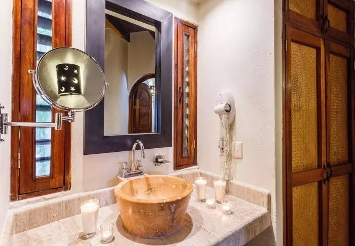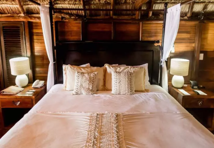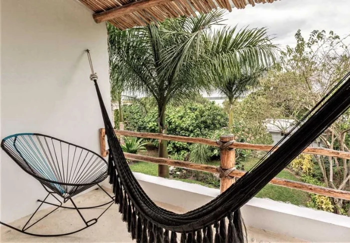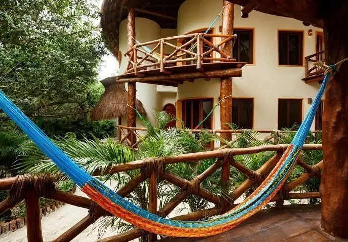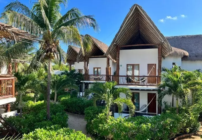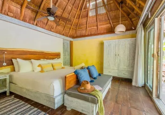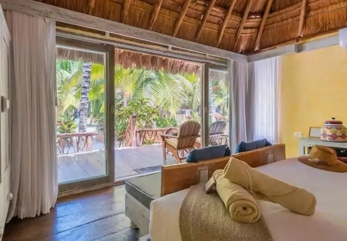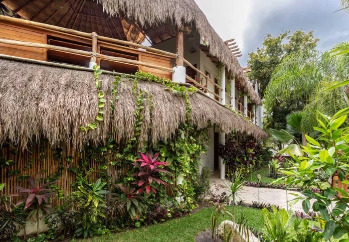 Yövyt viehättävässä, luonnonmateriaaleista valmistetussa majassa, jossa on kuivatuista palmunlehdistä valmistettu katto. Tilavat ja tyylikkäät huoneet on sisustettu harmonisesti vaaleilla väreillä, värikkäillä meksikolaisilla matoilla ja tyynyillä sekä kauniilla tummilla puulattioilla ja -huonekaluilla.