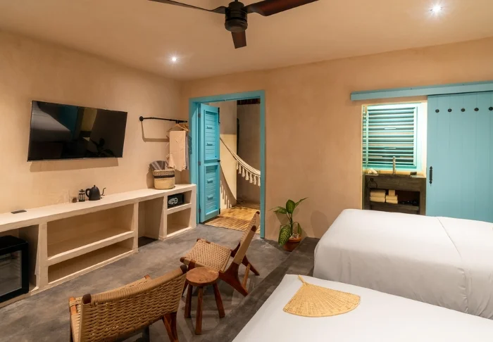 Hotellin huoneet on sisustettu meksikolaiseen tyyliin luonnonmateriaaleilla ja ripauksella värejä. Kaikissa huoneissa on ilmastointi, kattotuuletin, tallelokero ja oma pieni terassi.