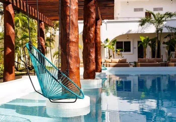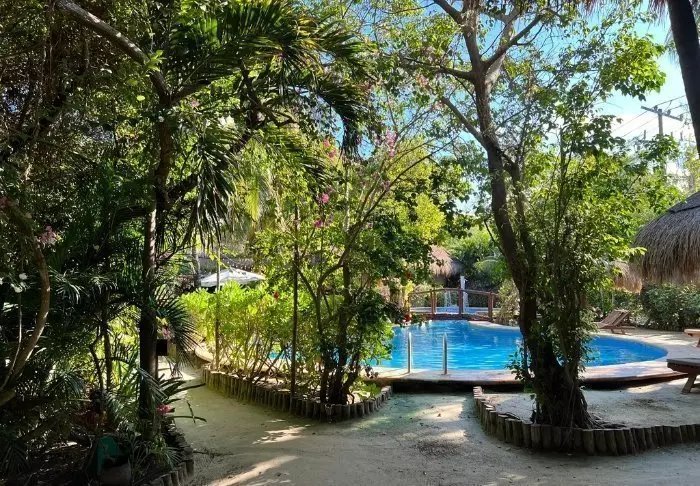 Pääravintolan lisäksi hotellin yhteydessä on uima-allas ja allasbaari, josta voit hakea kylmää juotavaa ilman, että sinun tarvitsee ensin nousta pois uima-altaasta. Aurinkotuoleja on sekä uima-altaan ympärillä että hotellin puutarhassa, jossa voit lukea hyvää kirjaa palmupuun varjossa. Jos ylität pienen hiekkatien, pääset Holboxin kuuluisalle rannalle, jossa voit nauttia kirkkaansinisestä vedestä ja lämpimästä merituulesta. Siellä on myös ilmaisia aurinkotuoleja, ja voit hemmotella itseäsi entistäkin enemmän tilaamalla rannalle ruokaa ja juomia.