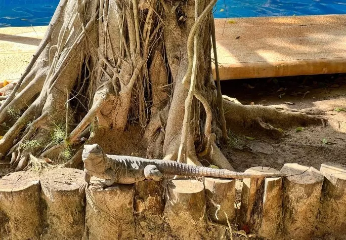 Huoneet sijaitsevat vehreässä puutarhassa, jonka monet puut tarjoavat sekä ihanaa suojaa auringolta että luontoelämyksiä, kun kauniit eksoottiset linnut tulevat käymään puutarhassa. Hyvällä tuurilla voit nähdä liskon tai iguaanin ryömimässä puunrunkoa pitkin.
