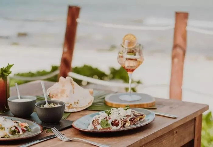 Hotellissa on sekä rantabaari, jossa voit nauttia kylmiä juomia tai välipaloja, että meksikolainen ulkoilmaravintola, jossa voit istua varpaat hiekassa ja nauttia merinäköaloista. Ravintolassa tarjoillaan myös majoitukseen sisältyvä aamiainen, ja myöhemmin päivällä ruokalistalla on lounasannoksia. Huippusesongin aikaan ravintolassa voi nauttia myös illallista. Ilta-aterian voit syödä myös jossakin lähellä sijaitsevista ravintoloista, joiden ruokalistoilla on mereneläviä, meksikolaisia erikoisuuksia ja kansainvälisiä ruokia. Voit myös suunnata Tulumin kaupunkiin, jossa on laajempi valikoima ravintoloita ja baareja.