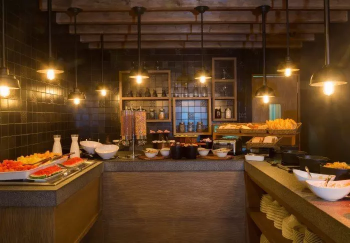 Päivä alkaa mukavasti hotellin ruokasalissa majoitukseen sisältyvällä aamiaisella, joka koostuu kansainvälisen keittiön ruokalajeista, kuten munakkaista, pannukakuista, smoothieista, tuoremehuista ja muista herkuista.