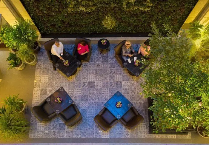 Kun tarvitset lepoa seikkailuntäyteisen päivän jälkeen, voit rentoutua aurinkotuolissa vehreällä sisäpihalla tai ottaa kirjan mukaan jollekin kattoterasseista ja rentoutua virkatussa riippumatossa. Hotellissa on kaksi pientä uima-allasta: yksi taivasalla ja toinen katettuna.