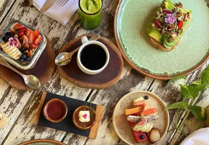 Hotellissa on kaksi ravintolaa: koko päivän avoinna oleva pääravintola ja vain iltaisin avoinna oleva sushiravintola. Pääravintolassa tarjoillaan runsas buffetaamiainen, joka sisältää runsaasti hedelmiä, leipää, leivonnaisia, kananmunia ja herkullista vastapuristettua mehua. Aamusta tulee todella taianomainen, kun voit nauttia aamiaista avoimen taivaan alla trooppisessa ympäristössä ja kuunnella samalla aaltojen liplatusta.