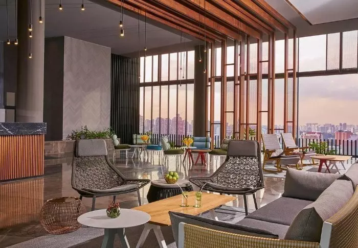 Myös rakennuksen sisäpuolella voi nähdä, kuinka upeasti täällä on onnistuttu tuomaan vehreä luonto keskelle suurkaupunkia. Hotellin ylimmässä kerroksessa on kattoterassi, joka on koristeltu 21 erilaisella köynnöskasvilla. Uima-altaita on kaksi, ja niiden ympärillä on mukavasti tilaa loikoilla aurinkotuolissa. Pari kerrosta alempana on toinen terassi, joka muistuttaa rehevää keidasta. Ota mukaan hyvä kirja ja istuudu rentoutumaan loungealueelle – tai pukeudu treenikamppeisiin ja tee pari harjoitusta vihreällä nurmikolla nauttien samalla upeista näkymistä. Voit myös käyttää kuntosalia, joka on avoinna 24 tuntia vuorokaudessa.