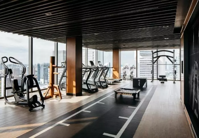 Hotellin omassa Sky Gym -kuntokeskuksessa voit treenata ja nauttia samalla upeista näköaloista, sillä kuntosali sijaitsee rakennuksen ylimmissä kerroksissa.