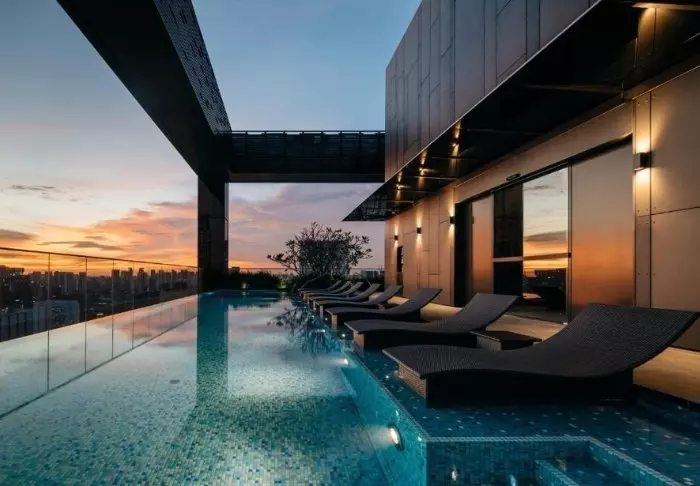 Ylimmässä kerroksessa sijaitsee hotellin Sky Pool, josta avautuu uskomattoman upea näköala yli koko kaupungin. Valitse mukava aurinkotuoli altaan ääreltä ja uppoudu hyvään kirjaan – tai nauti upeasta auringonlaskusta pitkän ja tapahtumarikkaan päivän päätteeksi.