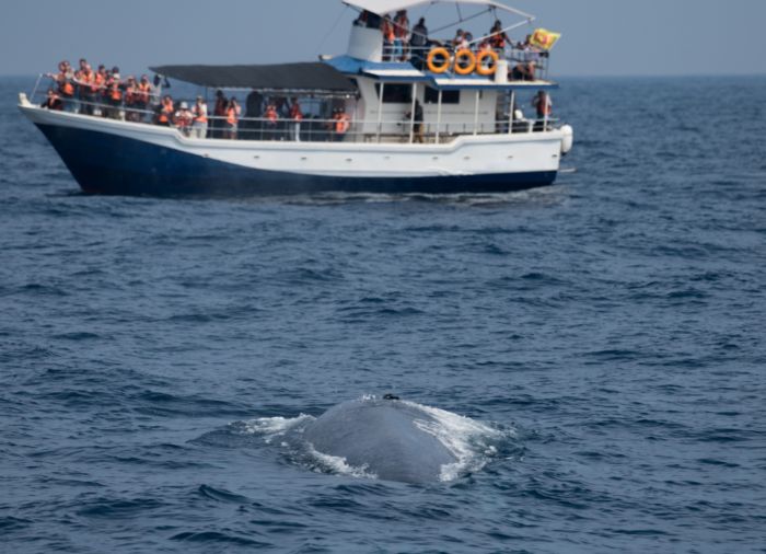 Seuraavien tuntien ajan vene kiertelee sinisillä aalloilla merten jättiläisten jäljillä. Retken aikana voit nähdä sinivalaita, hetulavalaita, kaskelotteja ja eri delfiinilajeja, sillä leikkisät delfiinit uiskentelevat mielellään veneiden lähellä.