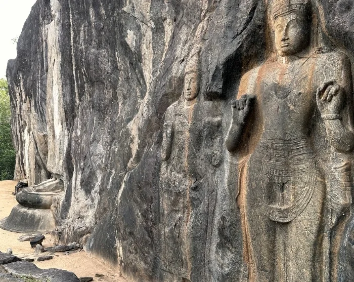 Tämän jälkeen matka jatkuu Buduruwagalan temppelille, jonka juuret ulottuvat aina 900-luvulle asti. Temppeli on tunnettu hyvin säilyneistä kalliokaiverruksistaan. Temppeli koostuu suurista kallioista, joihin on kaiverrettu 16 metriä korkea Buddha-patsas, jota ympäröi kuusi pienempää hahmoa, jotka esittävät Buddhaa eri meditaatio asennoissa. Yksityiskohtien runsaus ja hahmojen levollinen ilme pääsevät oikeuksiinsa rauhallisessa ympäristössä, sillä Buduruwagala elää hiljaisempaa elämää kuin monet Sri Lankan tunnetummista temppeleistä.