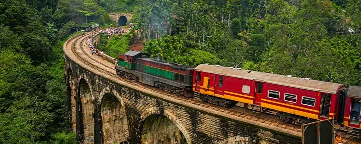 Matka jatkuu yhdelle maailman kauneimmista junareiteistä, joka kiemurtelee vehreiden laaksojen ja vuorten rinnalla aina Ellan asemalle asti. Edessänne on lisää suuria luontoelämyksiä. Seuratkaa polkua Little Adam’s Peakin huippua kohti, josta avautuu kiehtova näkymä ympäröivään maisemaan, ja ikuistakaa seikkailunne perhekuvalla vaikuttavan Nine Arch Bridgen edessä.