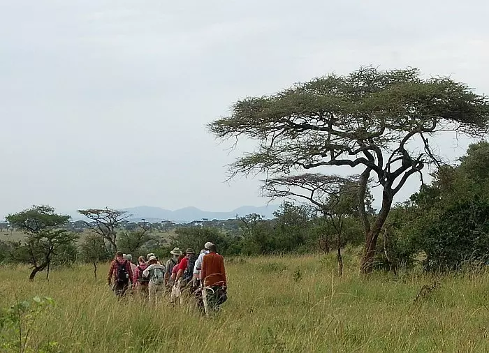 Walking safari on patikkaretki Ikoma Wild Campia ympäröivässä luonnossa. Kävelyretki kestää n. 60 minuuttia ja tapahtuu valoisaan aikaan. Kävely tapahtuu villissä luonnossa, minkä vuoksi retken johtajana toimii opas ja turvallisuuden takaa aseistettu vartija. Safarin kuluessa voit nähdä gaselleja, antilooppeja, seeproja, gnuuantilooppeja, kirahveja, norsuja, hyeenoja, puhveleita – ja jopa leijonia. On mahtava kokemus vaeltaa villissä maastossa luonnon armoilla!