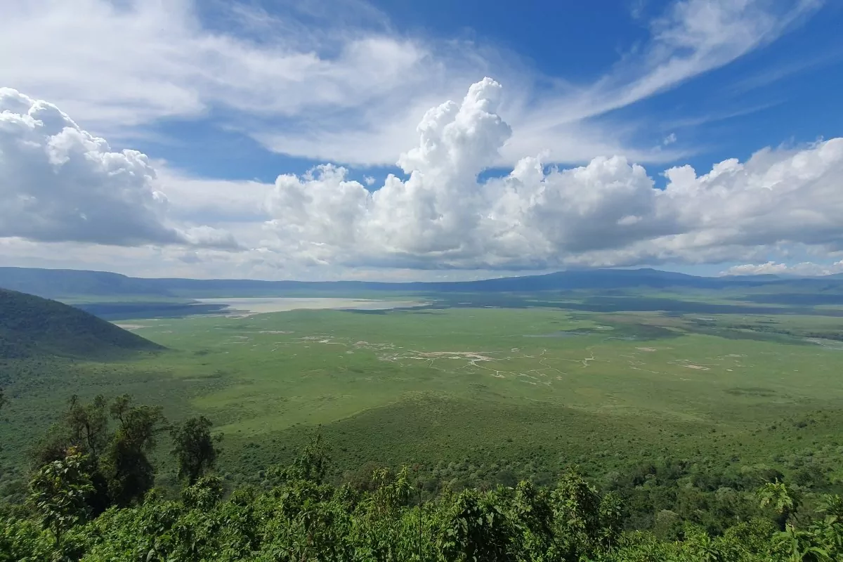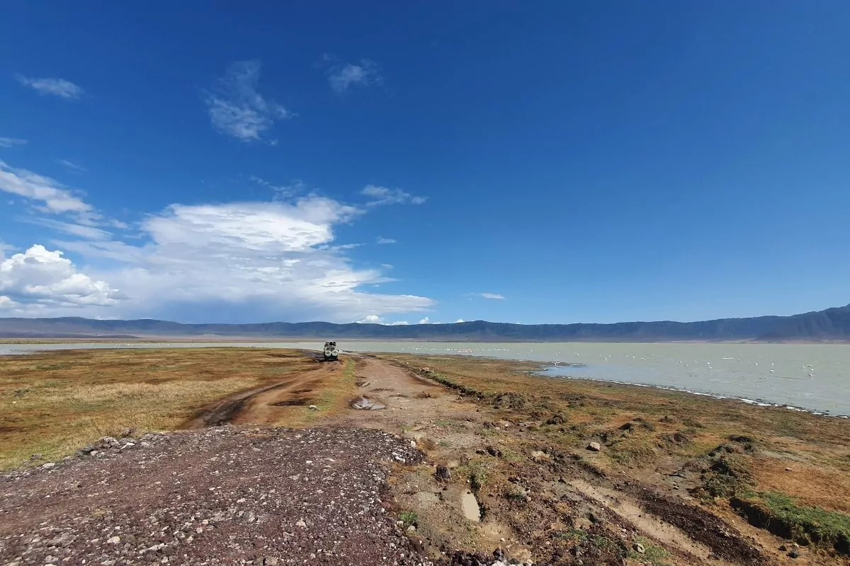 Ngorongoron alueelle tultua matka jatkuu ensin läpi rehevän sademetsän, jonka jälkeen alkaa kiemurteleva alamäki kraatterin reunalta. Jännittävän ajomatkan jälkeen saavutaan 260 km2 kokoisen kraatterin pohjalle. Kraatterin reuna kohoaa ympärillä 600 metrin korkeuteen. Pohjallakin olet tosiasiassa melko korkealla, sillä kraatterin reuna on 2200 metriä merenpinnan yläpuolella.