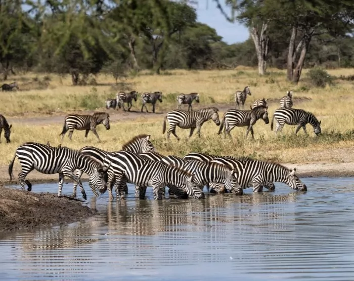 Iltapäivällä on ohjelmassa safari Tarangiren kansallispuistossa. Tiedossa on ainakin laumoittain norsuja! Tarangiressa elää nimittäin Pohjois-Tansanian suurin norsupopulaatio. Norsut viihtyvät täällä monesta syystä. Yksi tärkeimmistä syistä on, että niillä on Tarangiressa aina juomavettä. Myös kuivimpina vuodenaikoina, kun joki on lähes ehtynyt, norsut osaavat kaivaa vettä esiin.