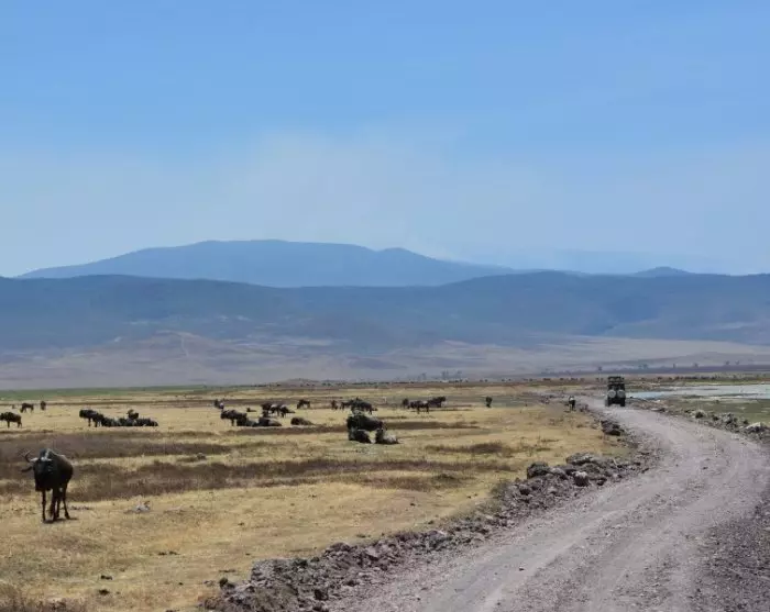 Jo pelkkä ajomatka alas kraatterin pohjalle on yksi koko reissun kohokohdista. Safariauton katto on avattu, ja se huristelee rinnettä alas, alas ja vielä vähän alas. Huomaat lämpötilan vaihtelevan ja voit haistella erilaisten puiden ja kukkien tuoksuja, kunnes lopulta saavutte pohjalla odottavaan mikrokosmokseen.
