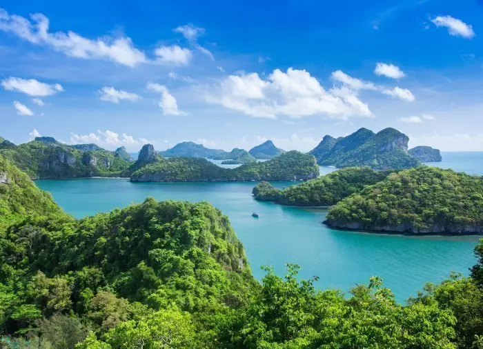 Ang Thong National Marine Park -merikansallispuisto koostuu 42 pienestä kalliosaaresta, jotka kohoavat merestä kuin helmet helminauhassa. Luonnonpuisto tarjoaa upeita paratiisirantoja, loistavia snorklauskohteita, jännittäviä luolia, järviä, vesiputouksia ja henkeäsalpaavia näköaloja.