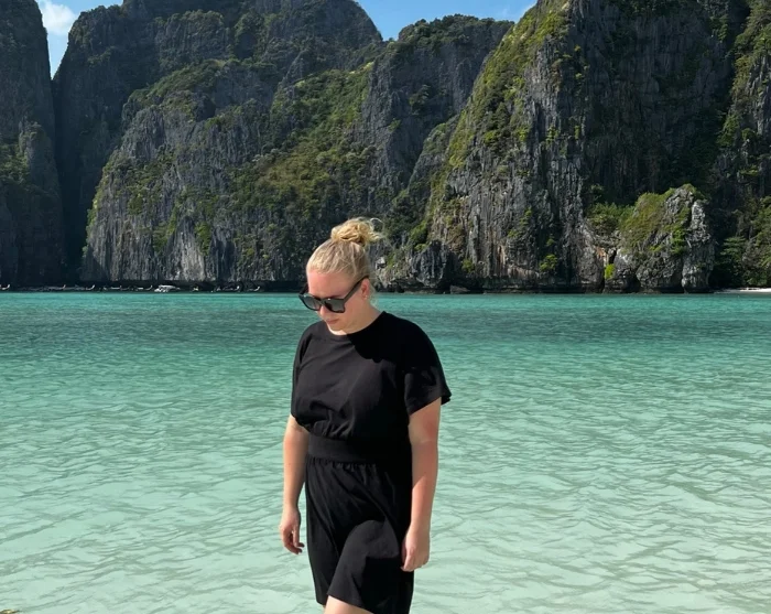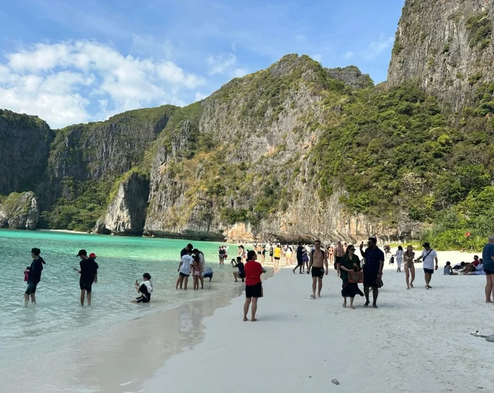 Aamiaisen jälkeen pikavene suuntaa kohti avomerta. Matka taittuu nopeasti kevyessä aallokossa. 45–60 minuutin jälkeen saavut Phi Phi Lein saarelle, joka on pienempi kahdesta pääsaaresta ja tunnetuin Maya Baysta – täällä kuvattiin elokuva “The Beach”. Siirryt maihin kelluvan laiturin kautta ja kävelet puista kulkusiltaa upealle lahdelle, jonka dramaattiset kallioseinämät kohoavat ympärilläsi. Maya Bayn maisema on kuin postikortista: hienonvalkoinen rantahiekka, turkoosinsininen meri ja jyrkät kalkkikivikalliot. Vaikka uiminen ei ole sallittua täällä, voit kahlata matalassa vedessä tai kävellä rantaviivaa pitkin – ja nauttia huikeista maisemista kaikessa rauhassa.
