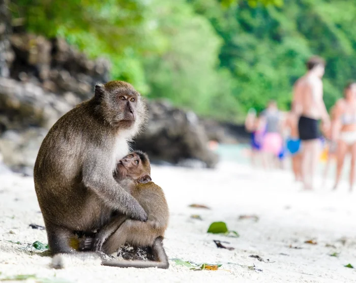 Matka vie seuraavaksi Viking Caven ohi ja jatkuu Monkey Beachille (Ao Ling), joka sijaitsee Phi Phi Donin, Phi Phi -saariston suurimman saaren, länsipuolella. Ranta on saanut nimensä siellä asuvista villeistä apinoista. Nämä veikeät apinat voivat myös varastaa tavaroitasi, joten suosittelemme, että jätät arvoesineet veneeseen tai piilotat ne huolellisesti. Phi Phi Donilla voit esimerkiksi nousta saaren tunnetulle näköalapaikalle, tehdä kävelyretken Phi Phi Don Villagen läpi tai rentoutua rannalla.