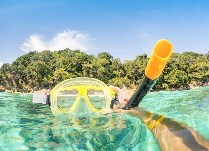 Seuraavaksi palaat takaisin veneelle, joka suuntaa kohti päivän ensimmäistä snorklauskohdetta. Pukeudut maskiin, snorkkeliin ja räpylöihin ja hyppäät veteen. Pinnan alla sinua odottavat uskomattoman kauniit korallit ja värikkäät kalat – hyvällä onnella voit nähdä vaikka Nemon.